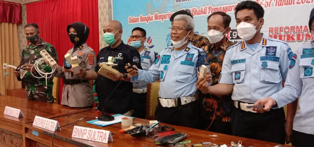KendariMerdeka.com, Kendari – Rangka memperingati hari Bhakti Pemasyarakatan ke-57, Kementerian Hukum dan Ham (Kemenkumham) serta beberapa instansi terkait. Yakni, Ombudsman Sultra, Korem143/HO, Polda Sultra, BNNP Sultra. melakukan giat sidak Rumah Tahanan (Rutan) dan Lembaga Pemasyarakatan (Lapas) yang dilakukan serentak se Sulawesi Tenggara (Sultra).