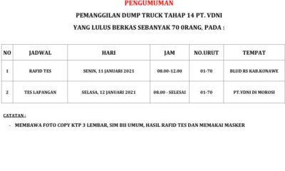 KendariMerdeka.com, Konawe – Kepala Bagian (Kabag) Humas dan Protokol Pemda Kabupaten Konawe, Sukri Nur kembali mengumumkan 70 orang Calon Tega Kerja Lokal PT VDNI tahap 14...