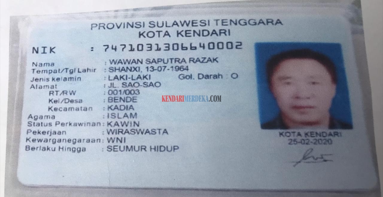 KendariMerdeka.com – Kasus WNA asal China yang memiliki KTP palsu, sudah masuk di meja penyidik Kriminal Umum Polda Sultra. Pria yang kerap disapa Mister Wang itu, menggunakan nama Indonesia Wawan Saputra Razak.