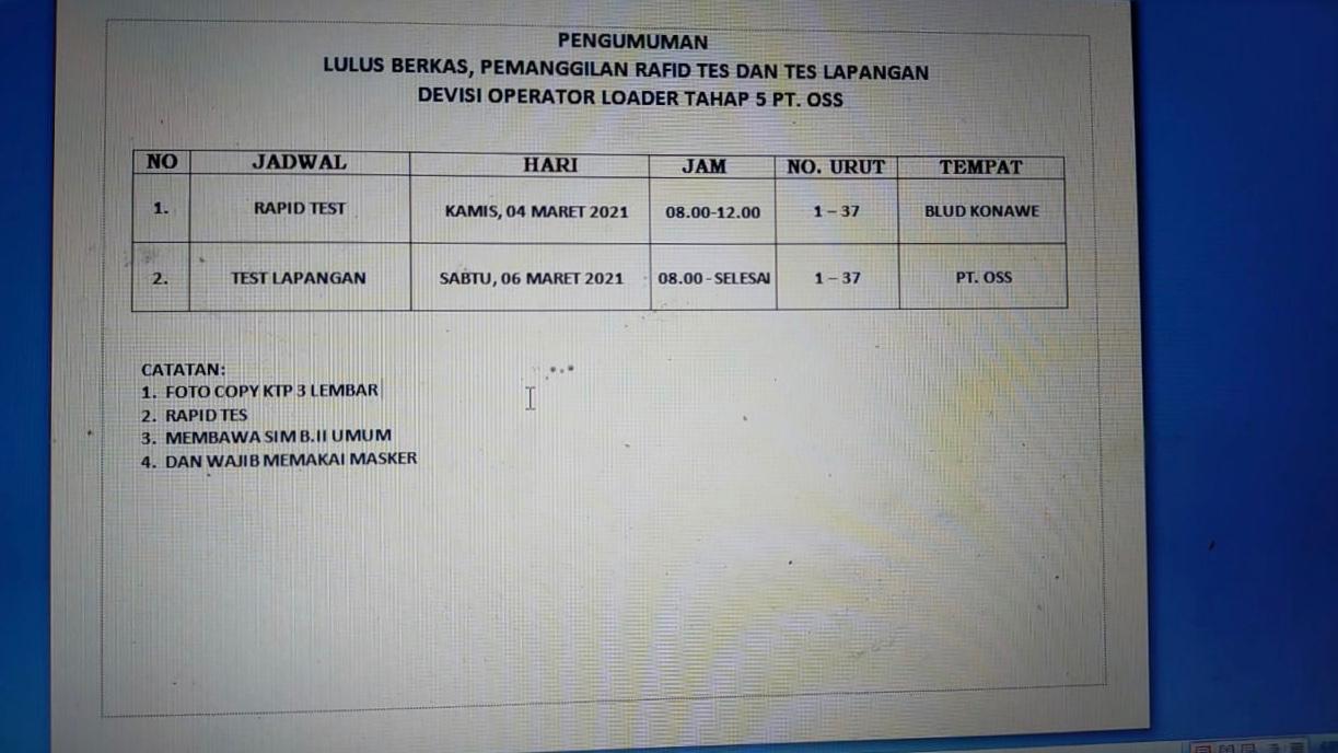 Pengumuman Lolos Berkas Tahap V PT.OSS